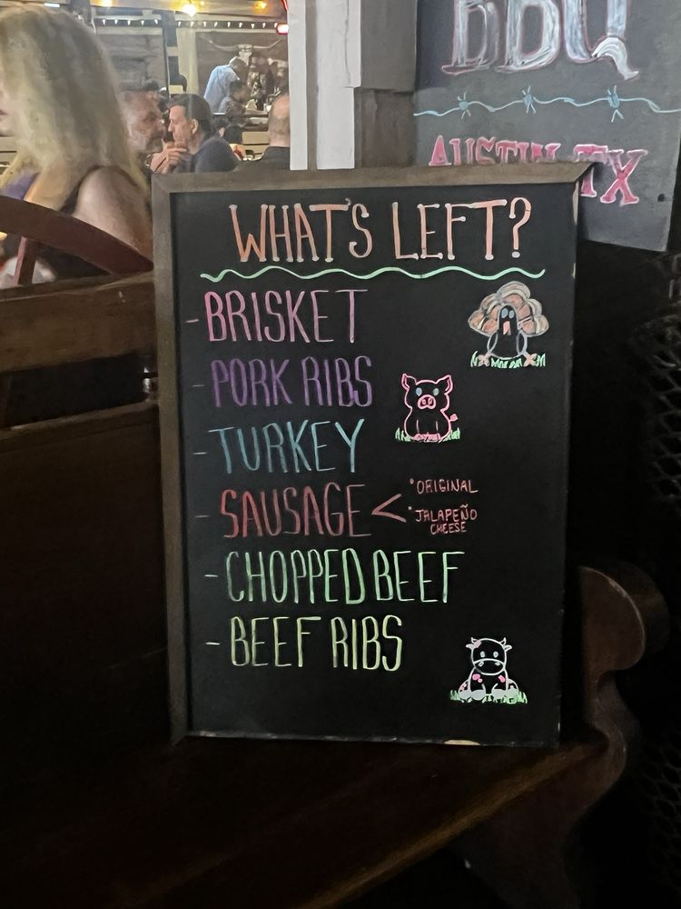 Introducing the menu at Terry Black's Barbecue, located in Austin, TX, offers a variety of options for both meat lovers and vegetarians. Their signature beef ribs have been raved about by customers for being fall-off-the-bone tender and flavorful. The brisket is moist, the jalapeƱo cheddar sausage packs a nice kick, and the mac and cheese is creamy. For those looking for healthier options, they also provide fresh salads with unique toppings like caramelized chicken and baked asiago crusted salmon filet. With a plethora of side dishes to choose from, Terry Black's caters to a wide range of taste preferences. Whether you're a BBQ connoisseur or just looking to enjoy a delicious meal, Terry Black's Barbecue is a must-visit destination in Austin.